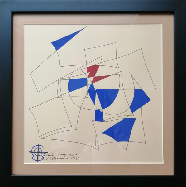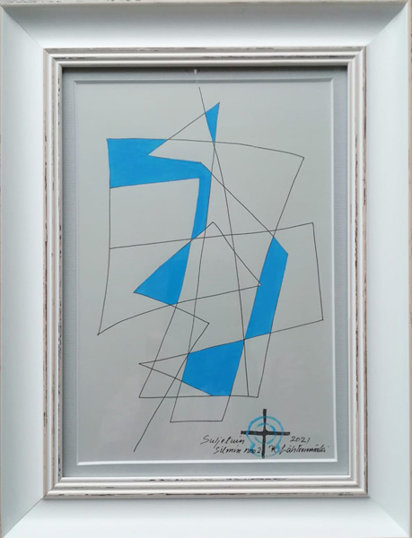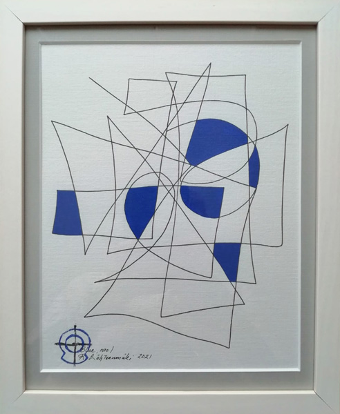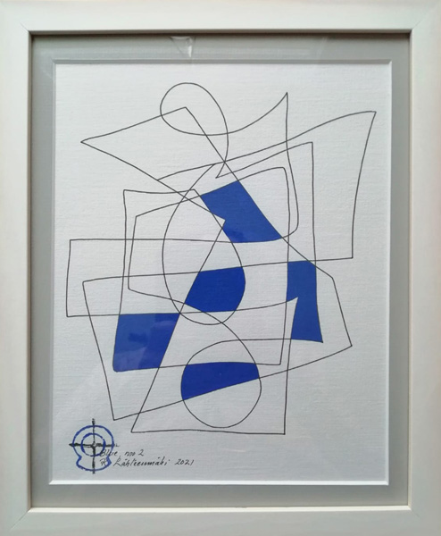 "Blue, nro 2". Tussi + akryyli kartongille.
