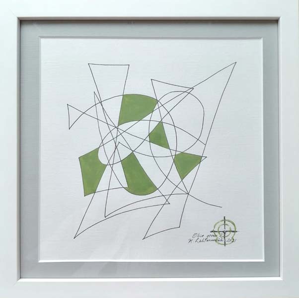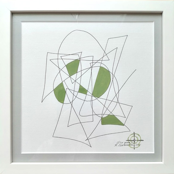 "Olive green, nro 1". Tussi + akryyli kartongille.