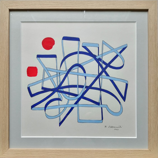 "Blue ribbon, nro 2". Akryyli ja tussi kartongille.