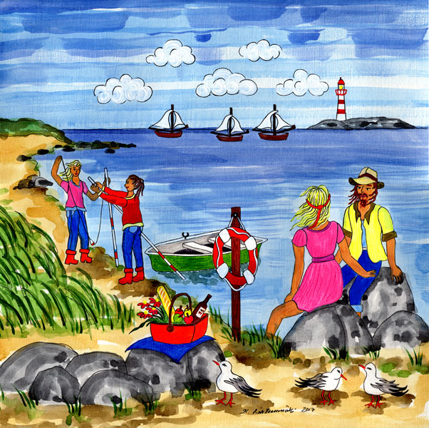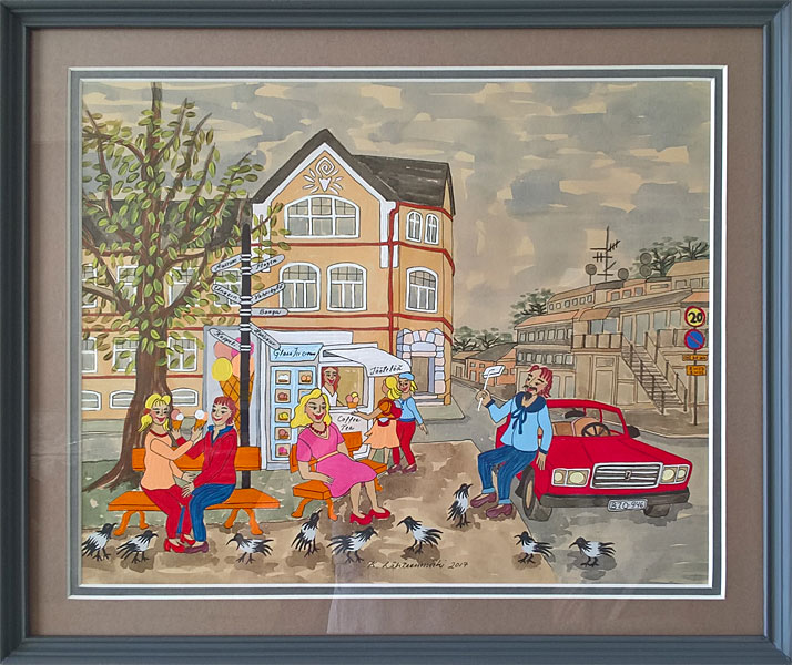 "Boris ja Heta jäätelökioskilla", sekatekniikka. 2017.