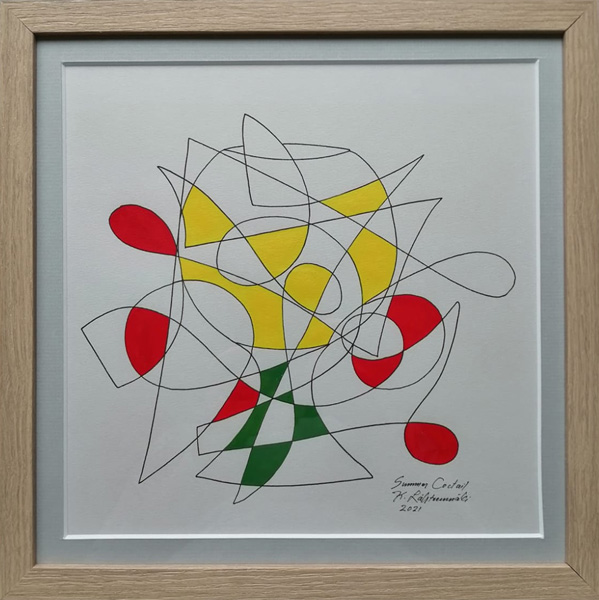 "Summer cocktail". Akryyli ja tussi kartongille.